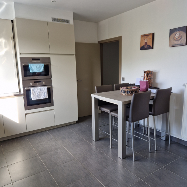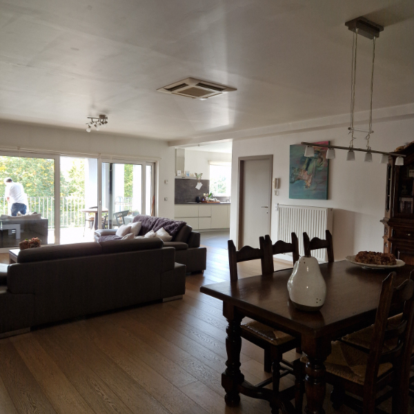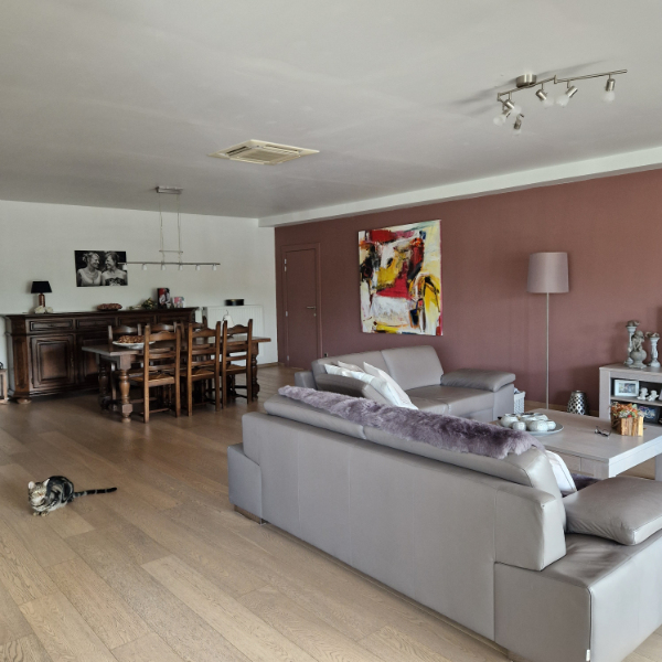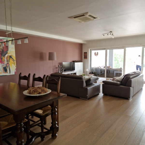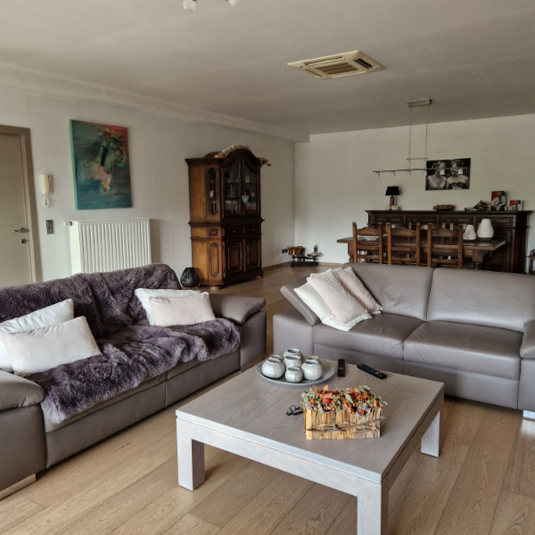 Zeer ruim luxueus appartement op 1e V met groot inpandig terras. Hall, living, ing. keuken, 3 slaapkamers, wasplaats, badkamer met douche en ligbad.