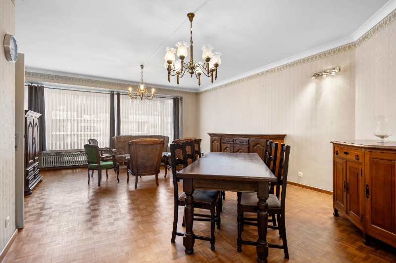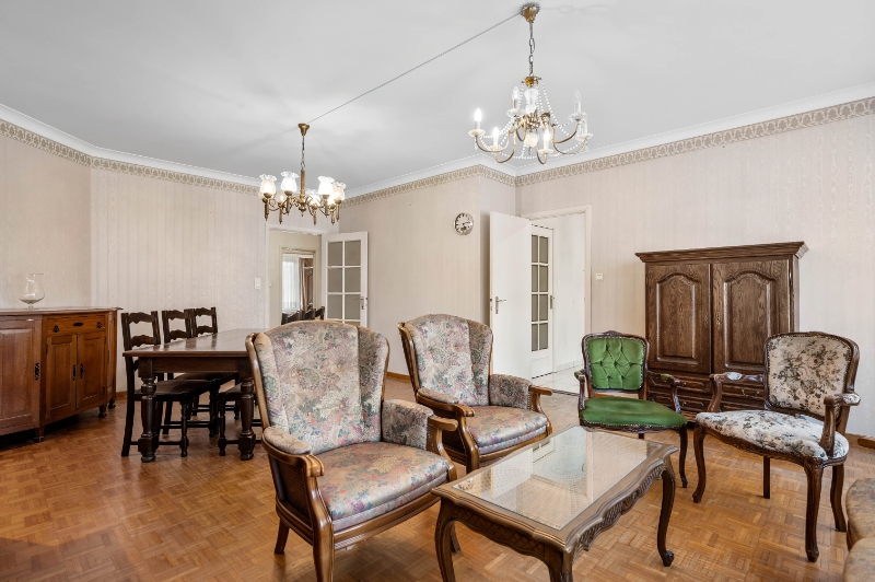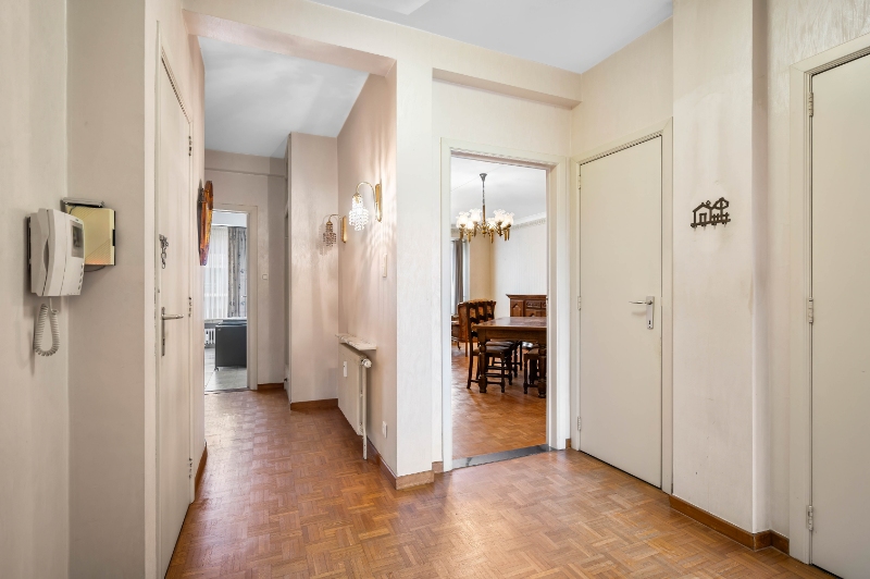 Hall en living met massief parket, afzonderlijk toilet, ingerichte keuken, badkamer met ligbad, 2 ruime slaapkamers waarvan 1 met terras, berging/wasplaats met nieuwe boiler.
