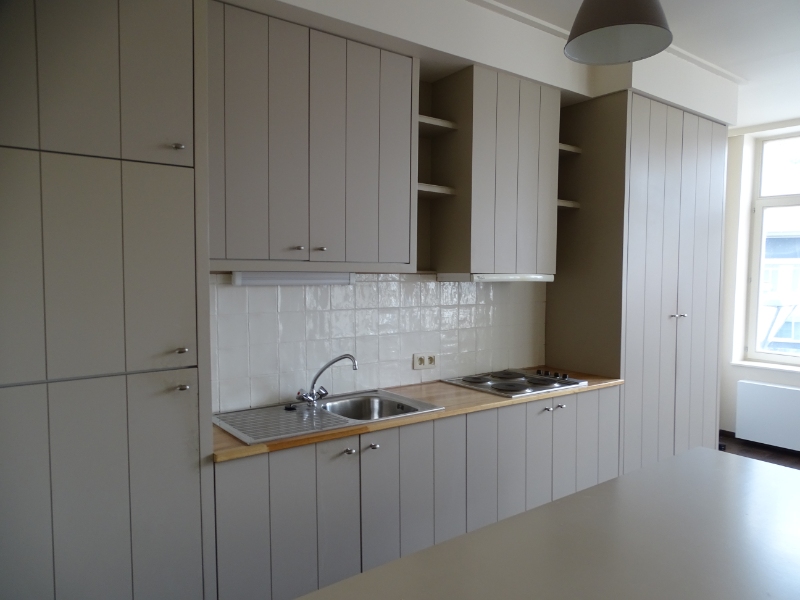 2de V : 1-slpks-appartement met terrasje, living met open keuken, recente badkamer en opberg-zolder.