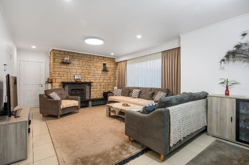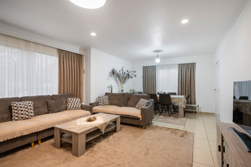 Inkomhal met bezoekerstoilet, ruime living en ingerichte keuken, 3 slaapkamers en badkamer met ligbad en toilet.