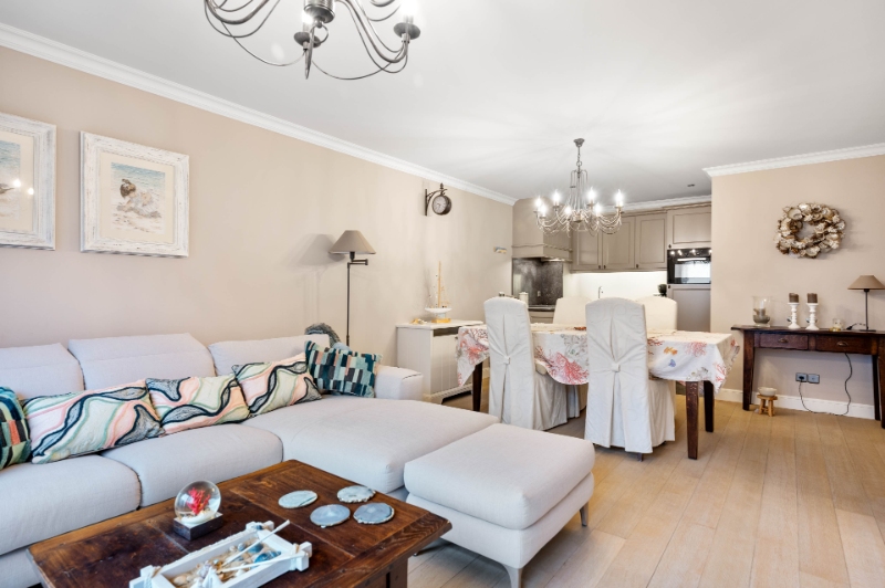 Living met open volledig ingerichte keuken, badkamer ( natuursteen) met ligbad, apart toilet, 2 slaapkamers met ingemaakte kasten, beging/wasplaats. Privatieve kelder.