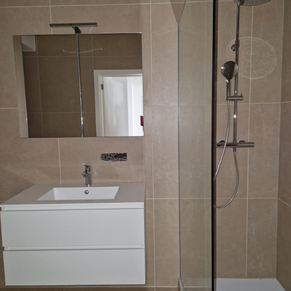 Esplanadeplein, volledig vernieuwd en instapklaar 2-slpk-appartement (104 m²) op 1ste V. met terrasje.