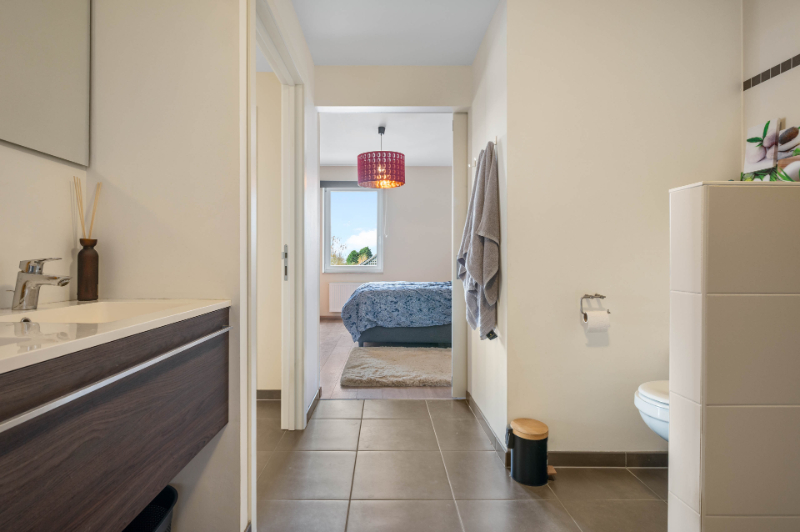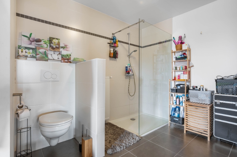 Stadsrand, recent appartement op 2de verdieping (met lift) in nieuwe wijk, omgeving OLV-kliniek. Grote living met open ingerichte keuken, volledig ingerichte badkamer met inloopdouche,
