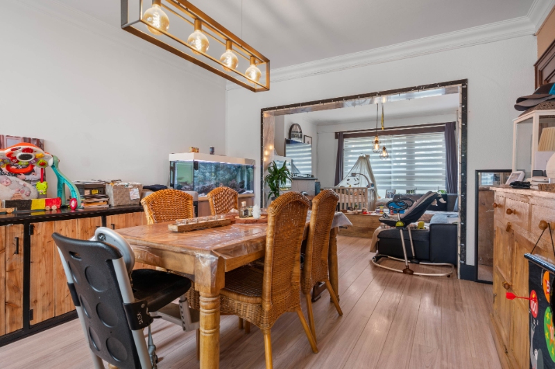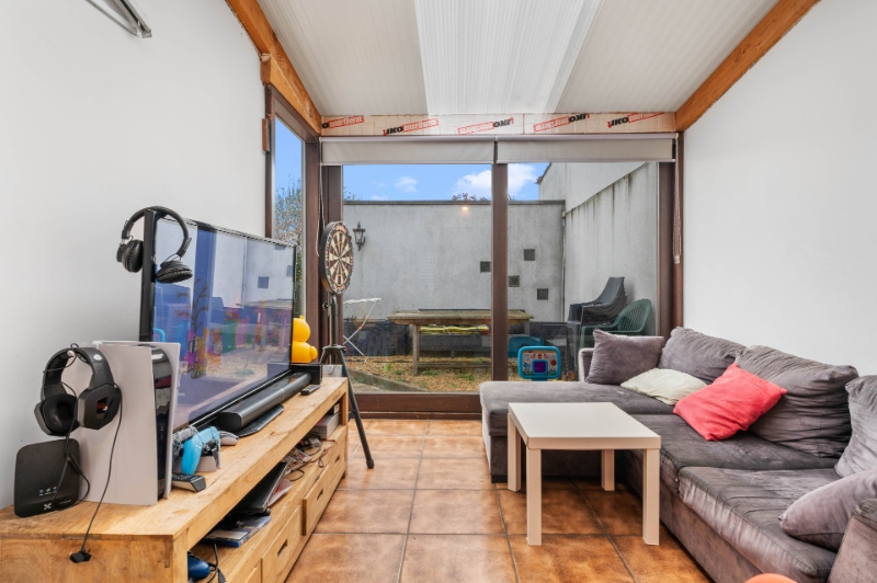 Gunstig gelegen zeer ruime rijwoning nabij scholen, winkels, openbaar vervoer. Vooraan privé parkeermogelijkheid voor 3 wagens.