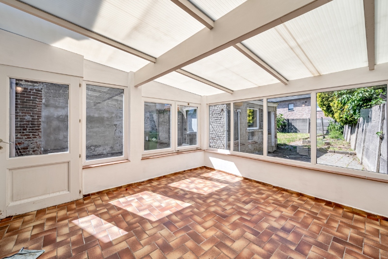 Hal, living, keuken, veranda. 1e V badkamer en 3 ruime slaapkamers. Nieuwe ramen isolerend glas, elektriciteit conform.