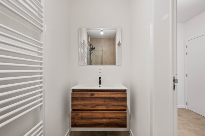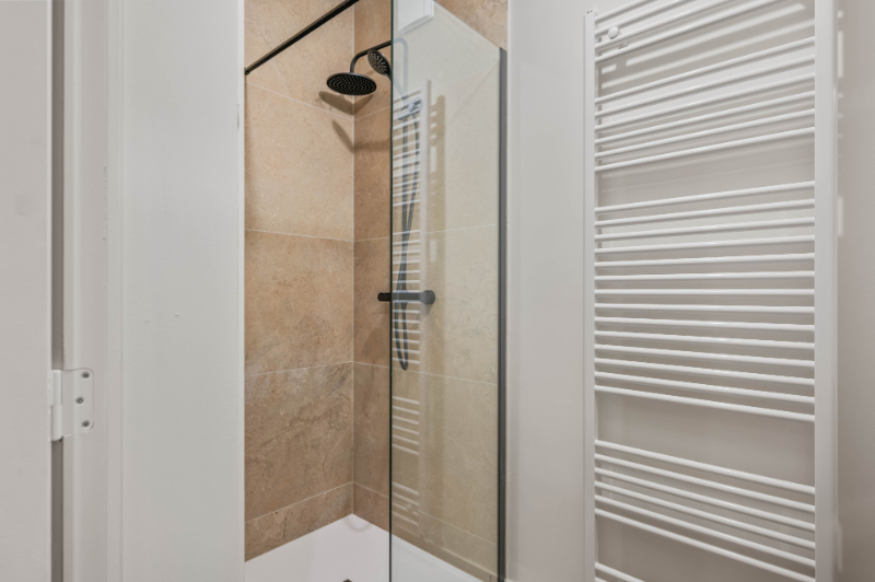 Slaapkamer, apart toilet, badkamer met instapdouche en badmeubel. Alles afgewerkt met kwaliteitsmaterialen en massief parket. Volledig professioneel geschilderd.