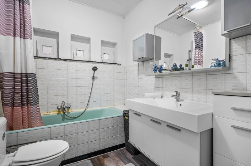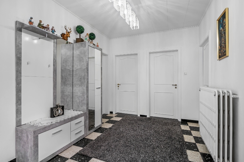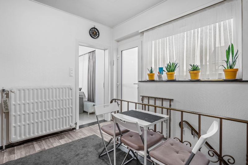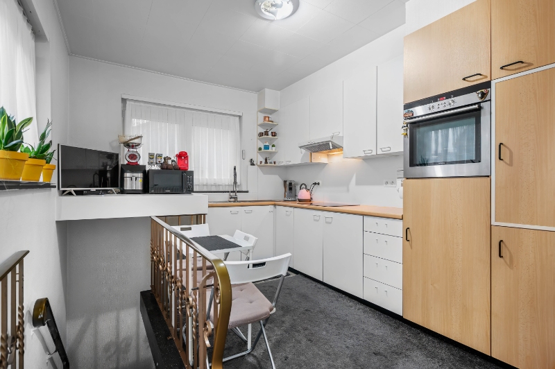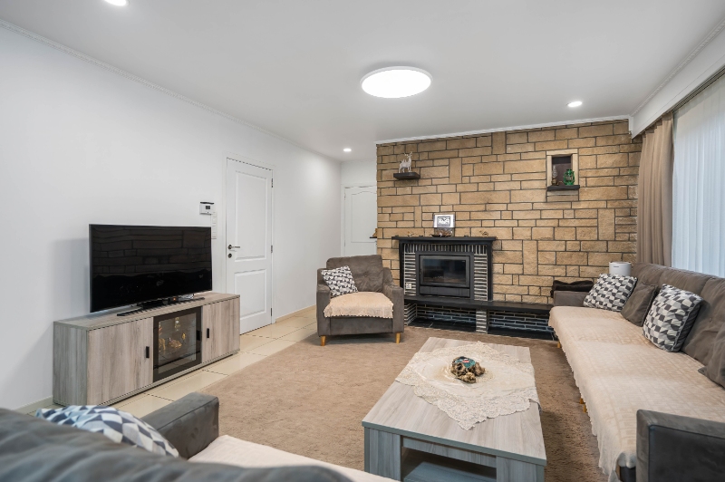Inkomhal met bezoekerstoilet, ruime living en ingerichte keuken, 3 slaapkamers en badkamer met ligbad en toilet.