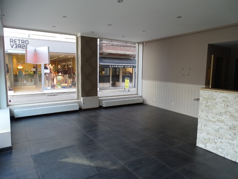 4 grote etalages, 2 afzonderlijke toiletten, stockage ruimte GLV, kelder (stockage). Onmiddellijk beschikbaar. € 1250,00