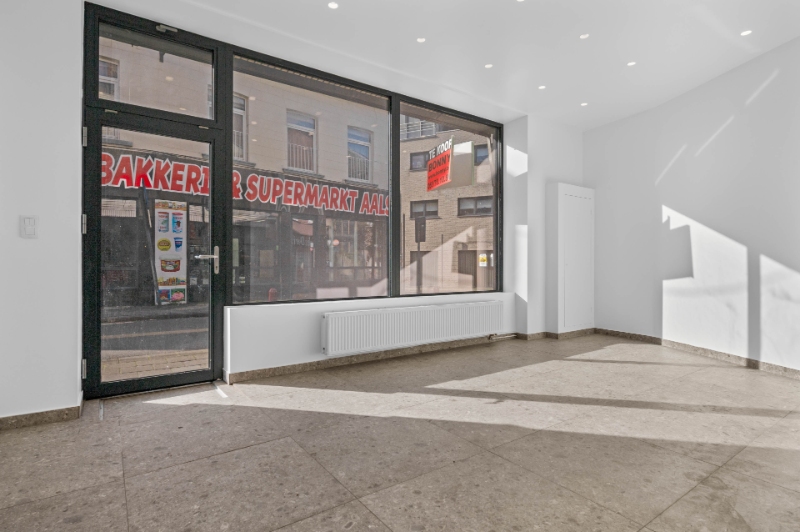 Varkensmarkt, op stapafstand van het station, winkelpand met belétage-woning in bruisende handelswijk van de stad Aalst.