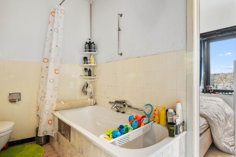 2de V : zolder, bereikbaar via vaste trap, geïsoleerde zoldervloer, mogelijkheid tot het creëren van 2 kamers.