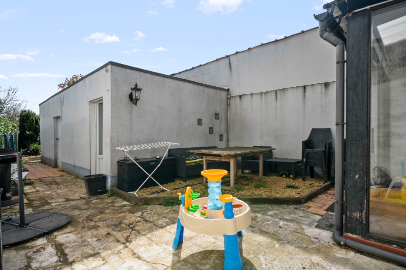 Tuin met grote berging. Dubbele beglazing. Elektriciteit conform. CV aardgas, brander HR Top.